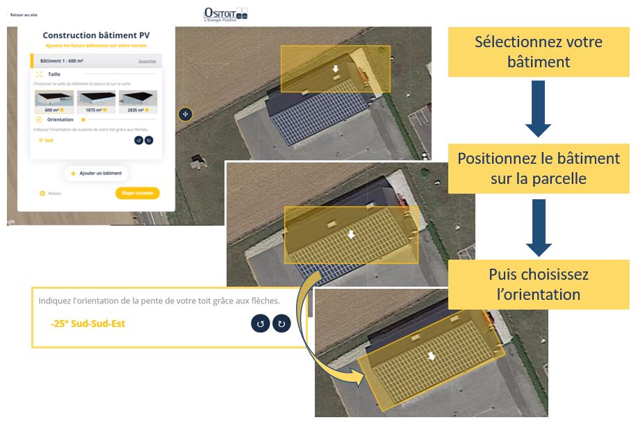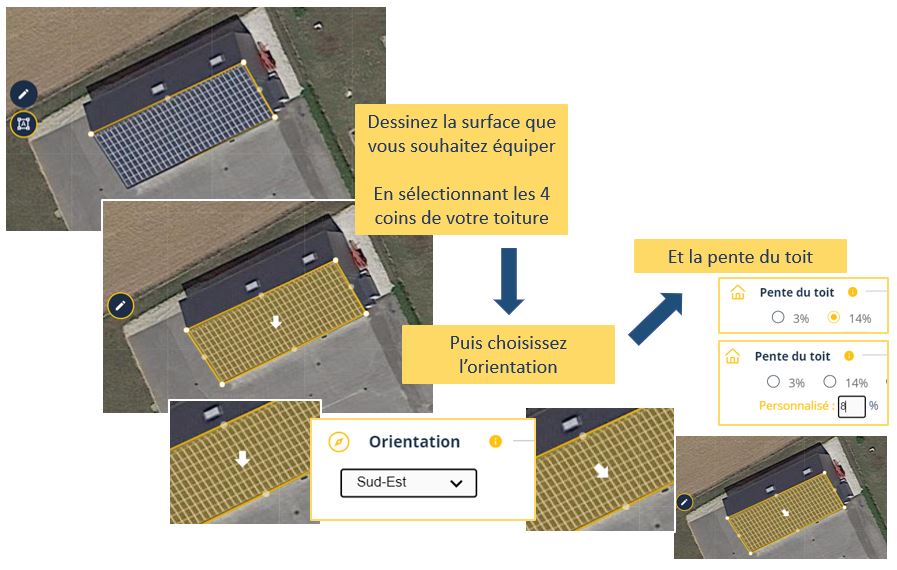 Indiquez l'orientation de la pente de votre toit grâce aux flèches.
